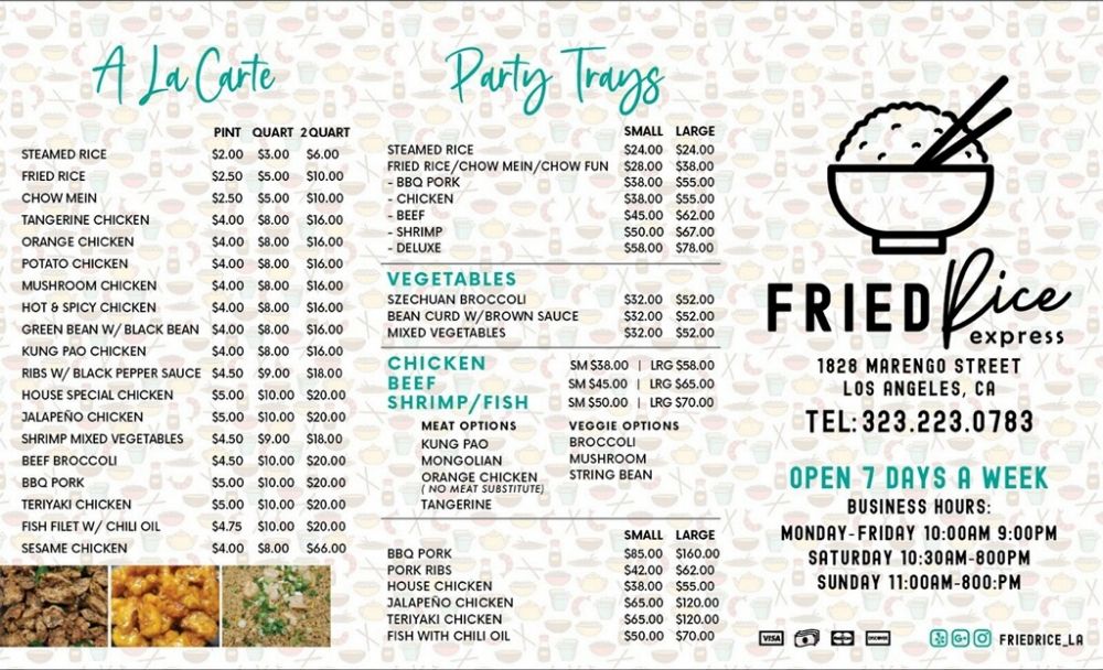 Welcome to Fried Rice Express, a vibrant Chinese eatery located at 1828 Marengo St, Los Angeles. This local gem specializes in delectable fried rice and a variety of classic dishes. The menu highlights include crispy orange chicken, savory kung pao chicken, and their unique shaken beef, offering something for every palate.